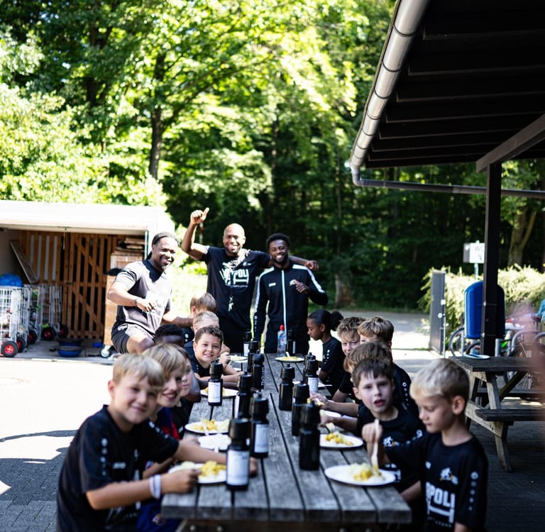 Die Kinder sollten nur ihre Fußballkleidung, Fußballschuhe und eine Regenjacke mitbringen – alles andere übernehmen wir!